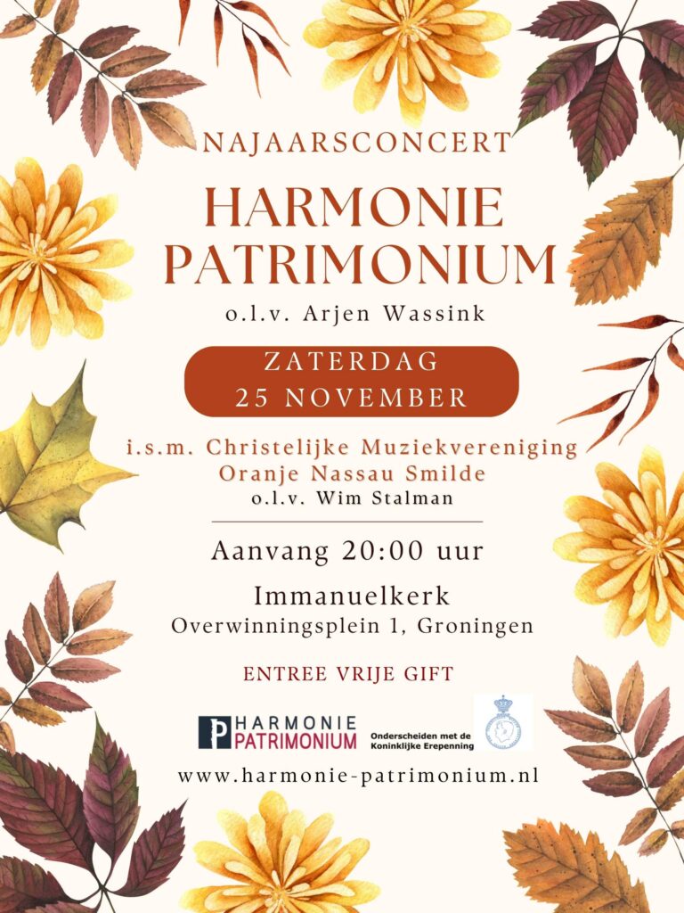 Op 25 november geeft Harmonie Patrimonium een concert, samen met Oranje Nassau uit Smilde. Kom je ook naar dit gezellige najaarsconcert?