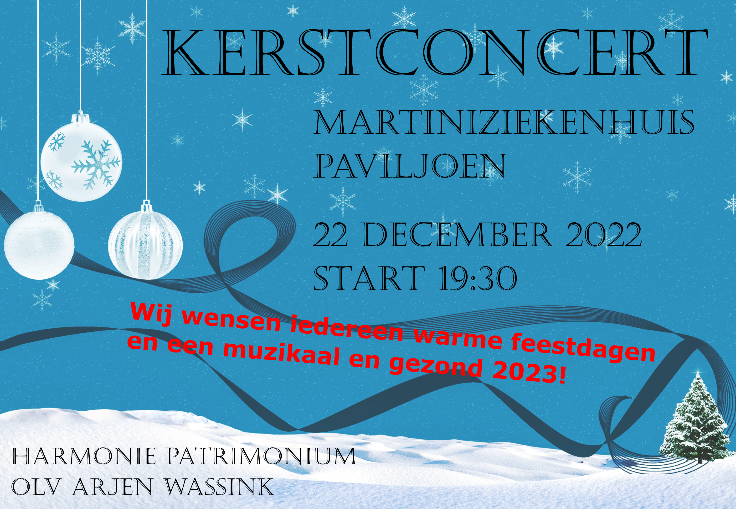 Harmonie Patrimonium wenst iedereen gezellige feestdagen en een muzikaal en gezond 2023! Graag zien we u in het nieuwe jaar bij één van onze concerten.