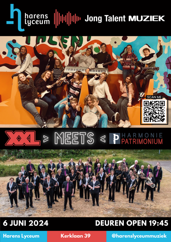 Kaarten zijn GRATIS!! Reserveren is wel verplicht, dus scan de QR code of volg deze link om een kaartje te reserveren: https://www.eventbrite.nl/e/tickets-xxl-meets-harmonie-patrimonium-913862666837?aff=oddtdtcreator